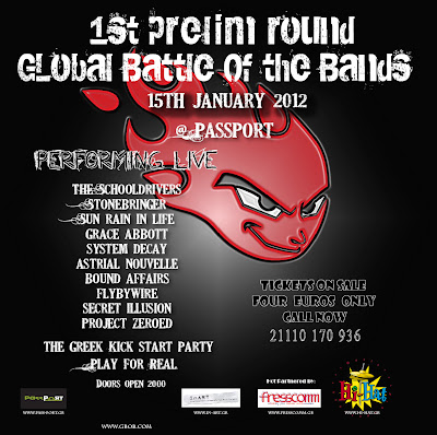 Οι Schooldrivers έχουν επιλεγεί και συμμετέχουν στο Παγκόσμιο Μουσικό Πρωτάθλημα, ο 1ος προκριματικός γύρος του οποίου θα διεξαχθεί αυτή την Κυριακή 15/01/2012 στο PASSPORT.