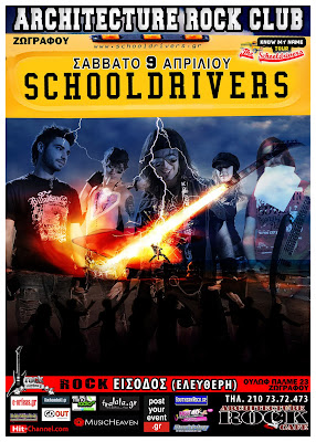 Οι SCHOOLDRIVERS για 1 και μοναδική εμφάνιση αυτό το Σάββατο 9 Απριλίου στην αυθεντικότερη ροκ σκηνή της Αθήνας: την Αρχιτεκτονική με ένα χορταστικό, πλήρως ανανεωμένο, γεμάτο εκπλήξεις 4ωρο ROCK πρόγραμμα με ελληνικές και ξένες επιτυχίες που όλοι έχουμε σιγοτραγουδήσει!
