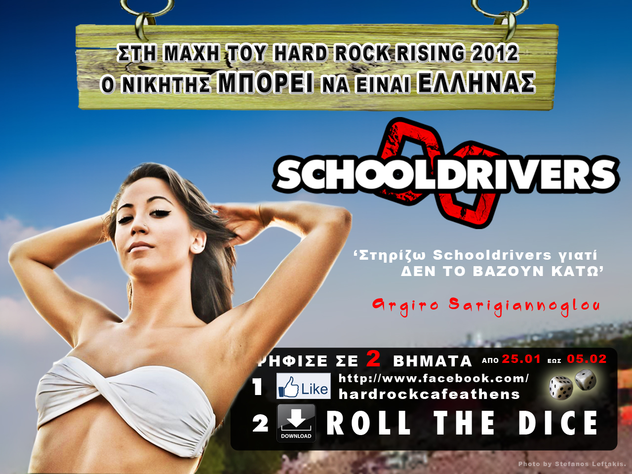 Ψηφίστε απευθείας στο παρακάτω link κατεβάζοντας το κομμάτι μας Roll The Dice (δωρεάν). Το μόνο που χρειάζεται είναι να κάνετε Like τη σελίδα του Hard Rock Cafe Athens.