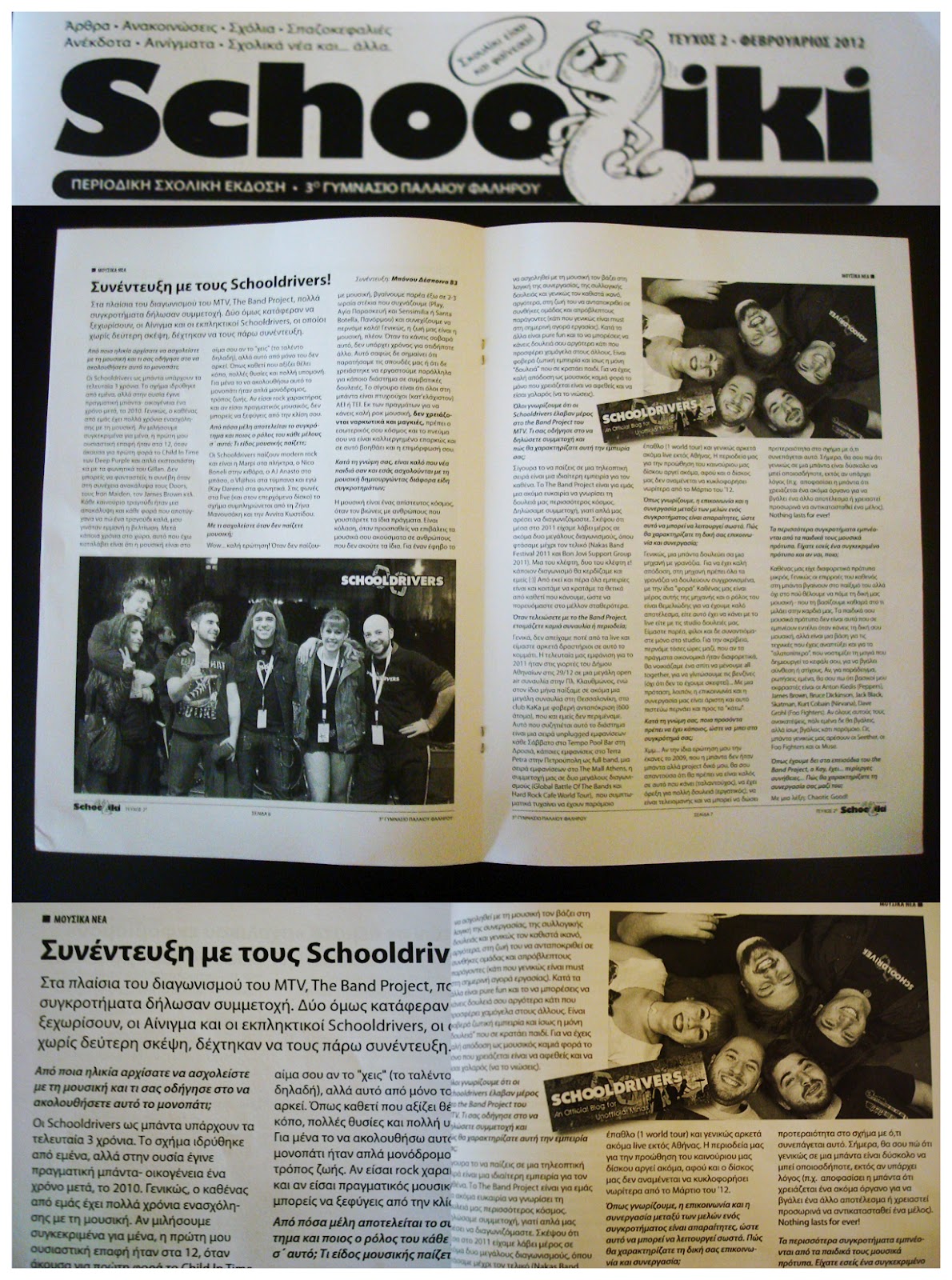 Το 3ο Γυμνάσιο Παλαιού Φαλήρου μας έκανε την τιμή να μας συμπεριλάβει σε ένα δισέλιδο αφιέρωμα στην πραγματικά καταπληκτική σχολική εφημερίδα “Schooliki” (μα δεν τα σπάει το όνομα?!). Ένα μεγάλο μπράβο αξίζει σε όλα τα παιδιά και τους διδάσκοντες που αποφάσισαν να διοχετεύσουν το χρόνο τους σε κάτι τόσο δημιουργικό όσο τη δημιουργία ενός τόσο αξιόλογου εντύπου! Special thanxxx στη μαθήτρια της Β’ Γυμνασίου Δέσποινα Μπόνου (Β3) για τη συνέντευξη και το όλο στήσιμο!