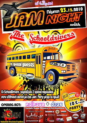 Έτσι την Πέμπτη 23 Δεκεμβρίου οι SchoolDrivers επιστρέφουν στα roots με ένα JAM NIGHT OPEN SESSION για όλους στον ιστορικό χώρο του Jasmin Rock Club (Μιχαλακοπούλου 150 και Σινώπης 27), όπου θα κόψουμε και την τούρτα για τα 2 χρόνια μας!
