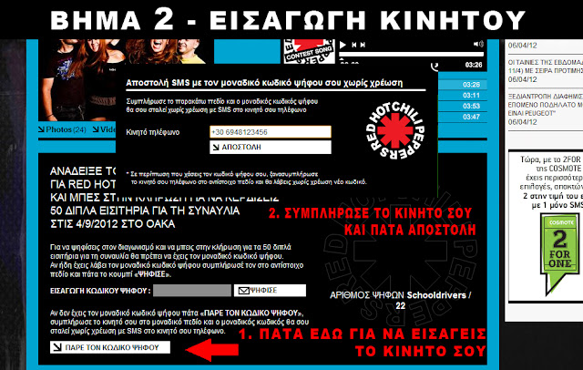 BHMA 2: Πηγαίνετε στη σελίδα των Schooldrivers: http://www.jumpingfish.gr/schooldrivers και εισάγετε τον αριθμό του κινητού σας στο ειδικό πεδίο που θα δείτε για το διαγωνισμό.